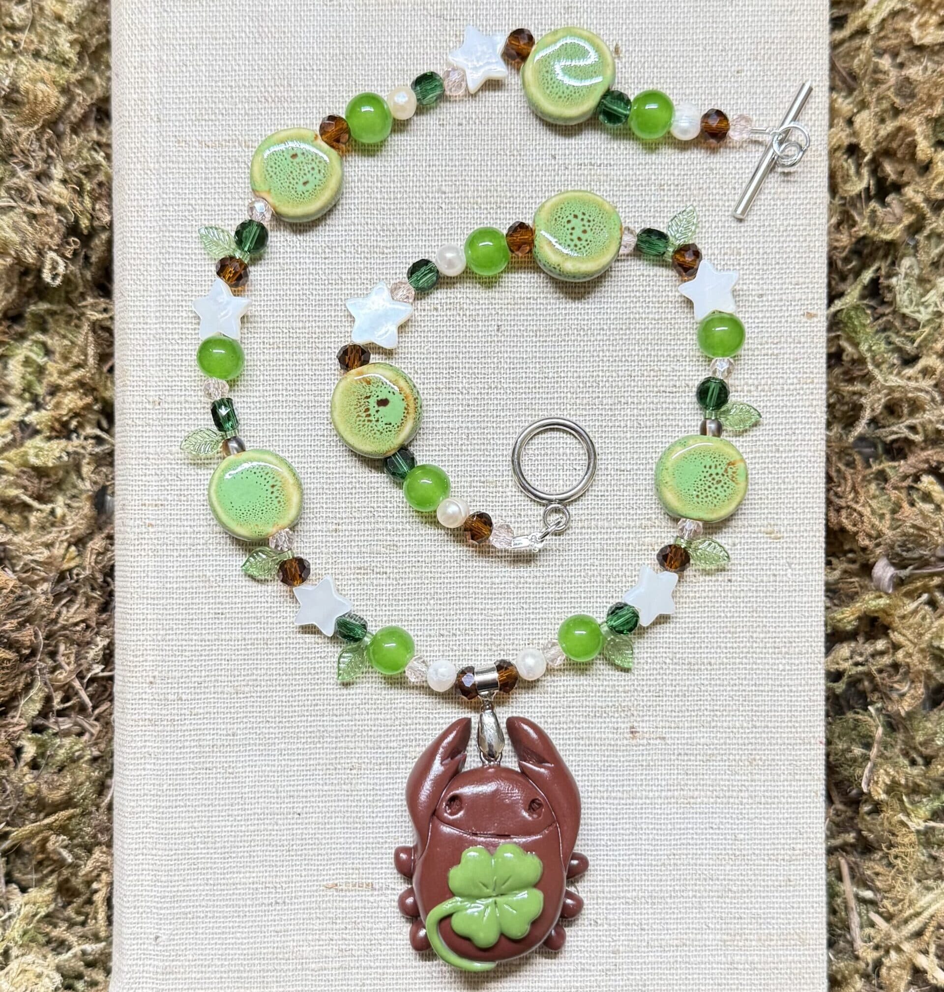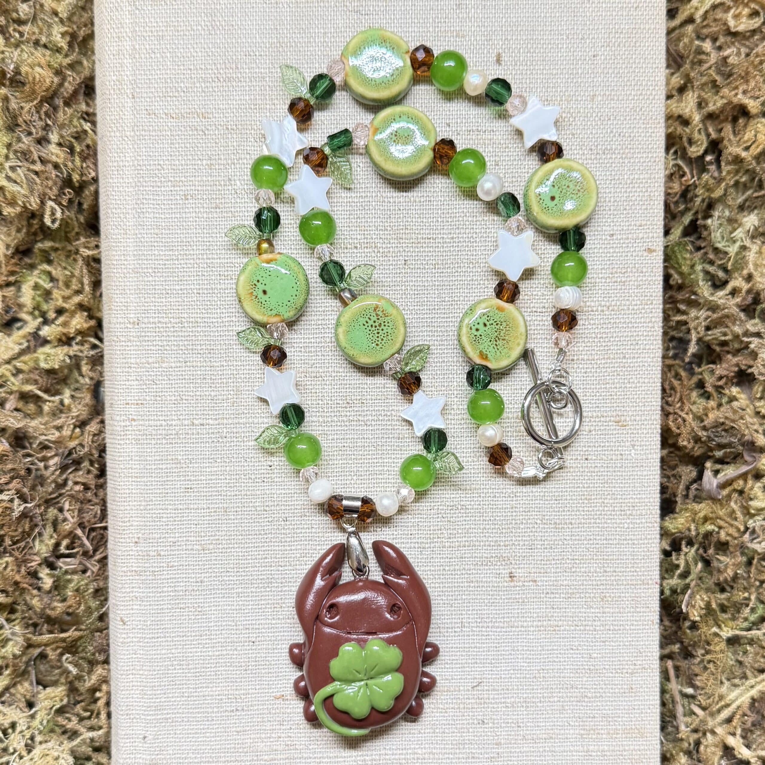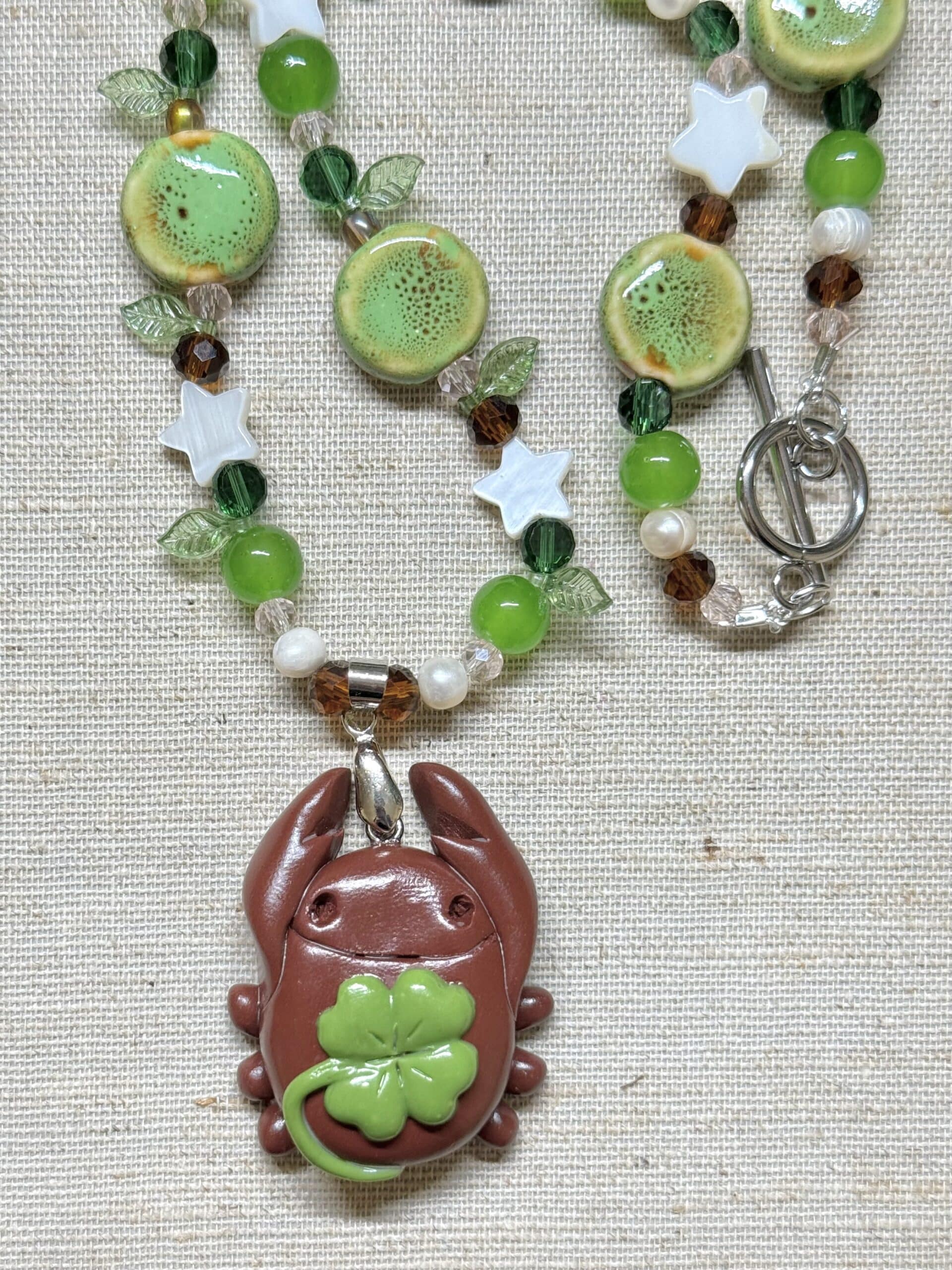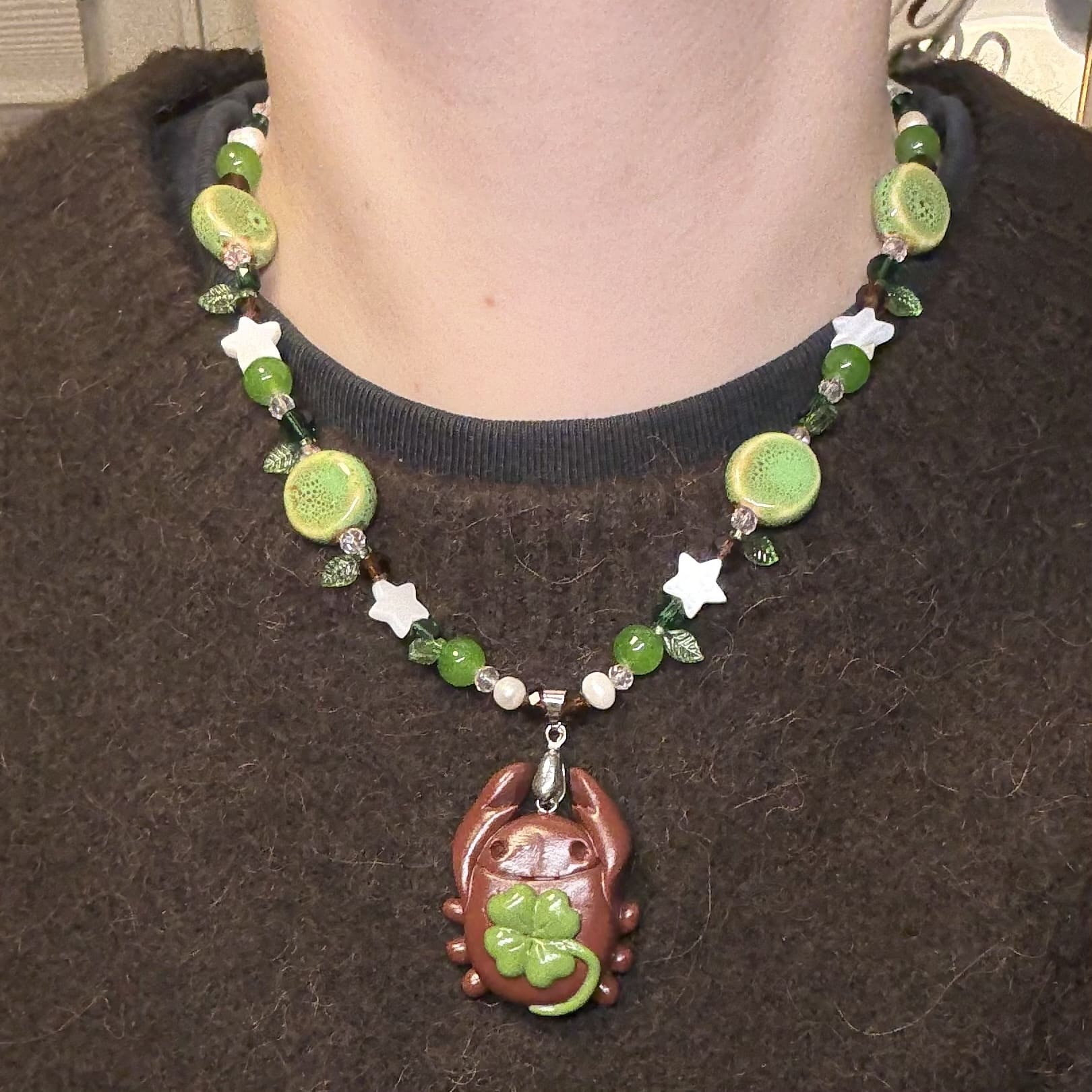 • handmade lucky clover bug necklace