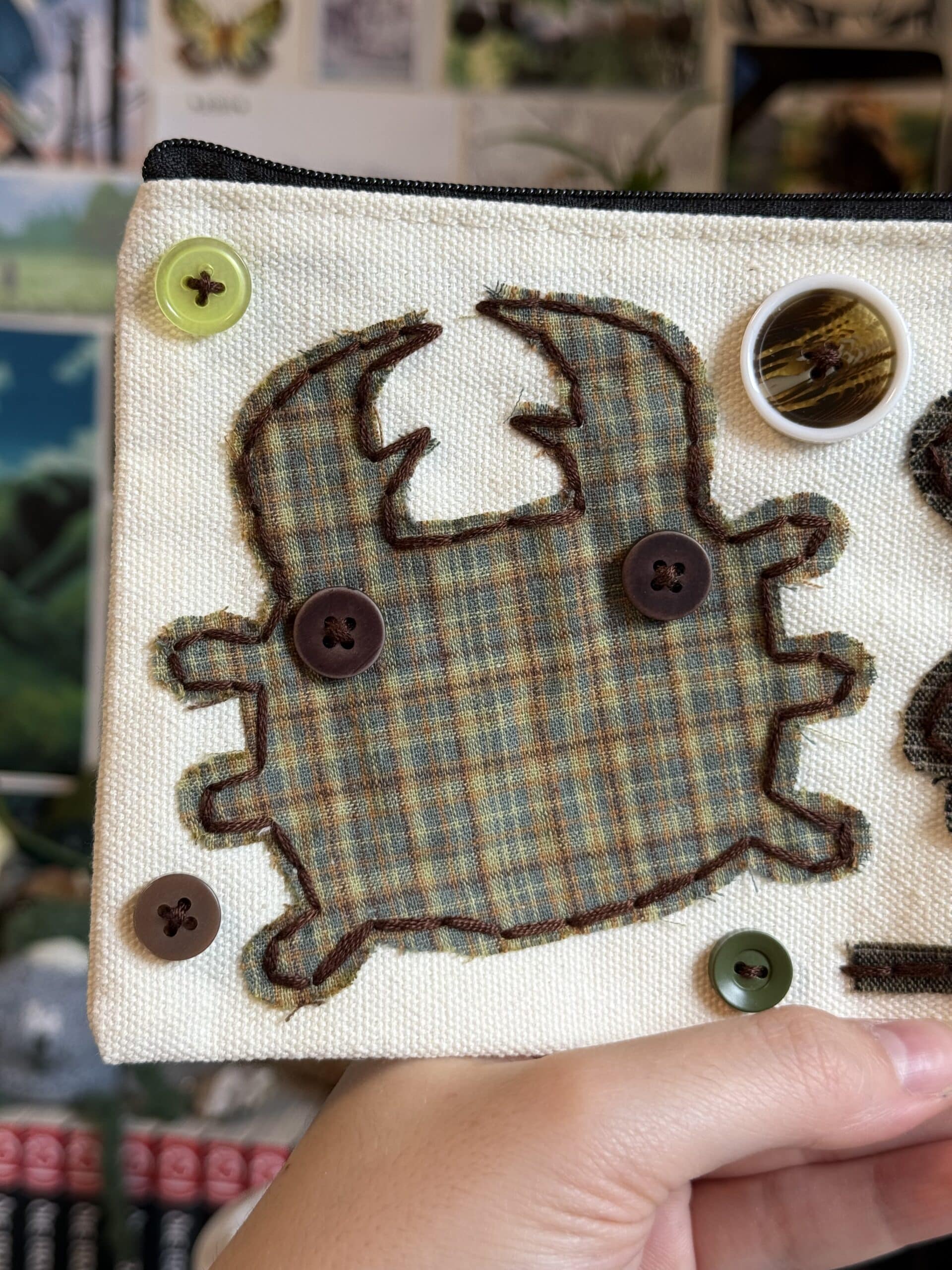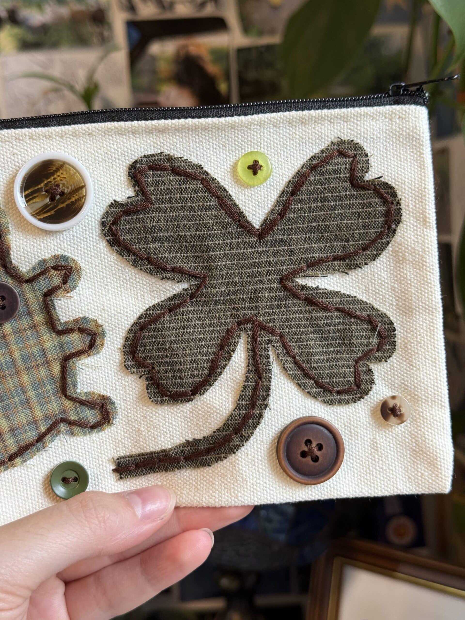 • handstitched lucky clover bug pouch