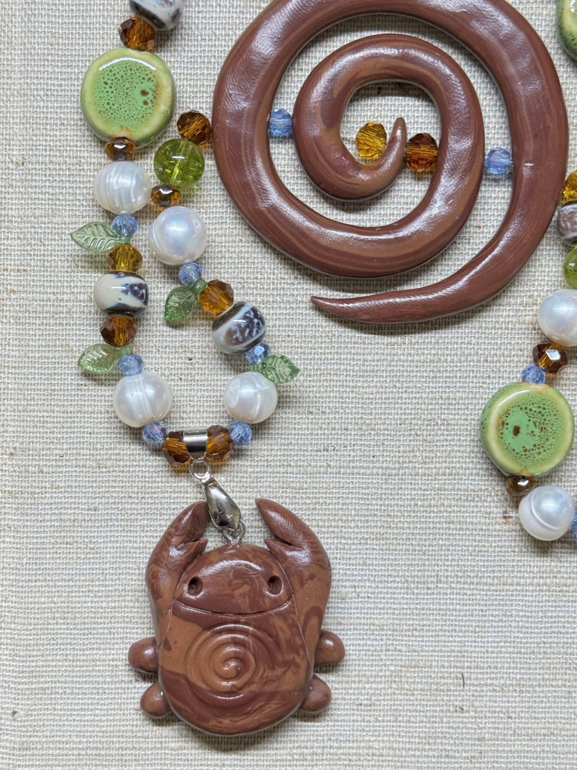 • handmade polymer clay bug and spiral charm