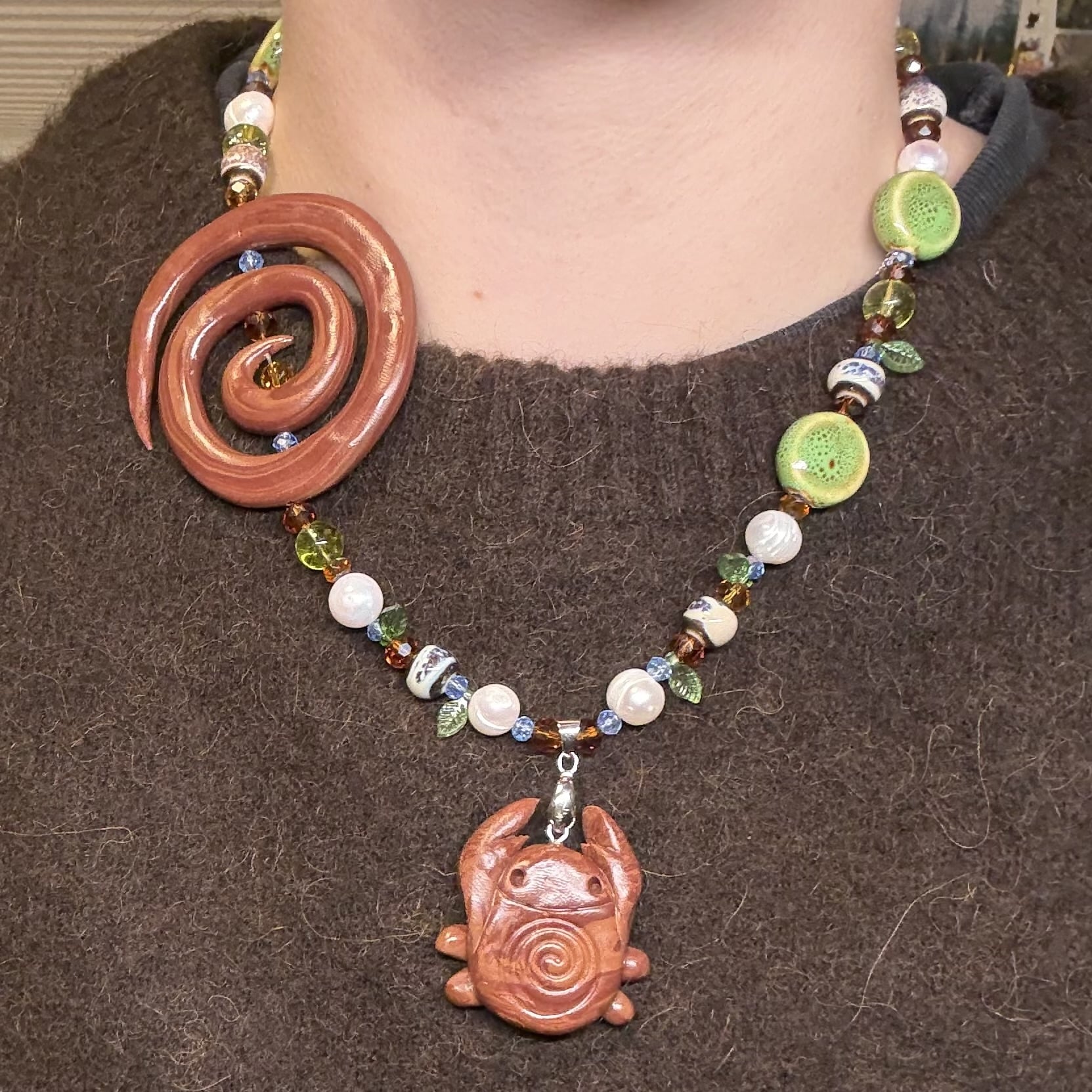 • handmade spiral bug necklace